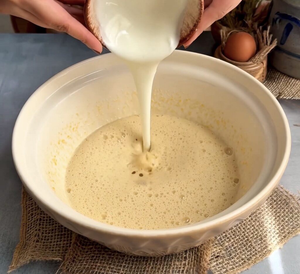 After that, pour in the warm milk and mix just until the batter becomes smooth. A gentle hand whisk works best here to keep the batter airy while ensuring everything is properly incorporated.