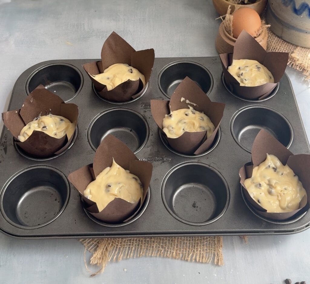 - Fill the muffin liners to the top for a bakery-style rise and let the batter rest briefly while the oven is fully preheated at 200°C.