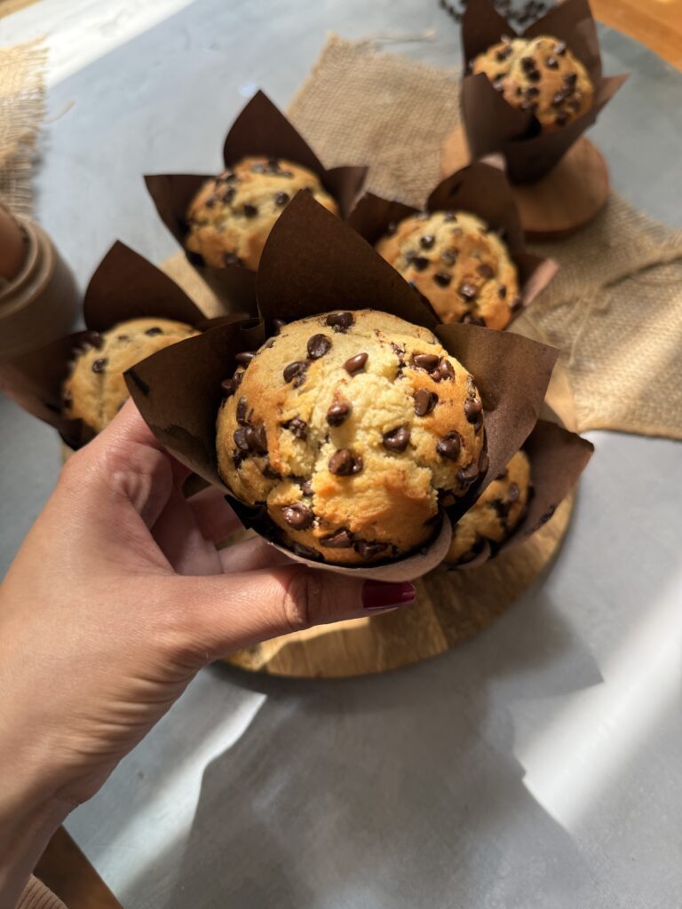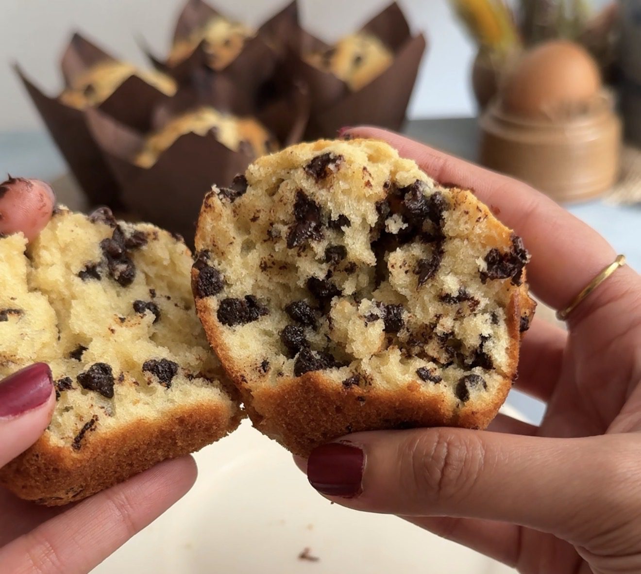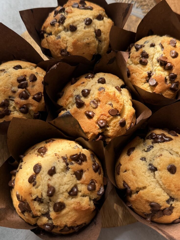 You will love how easy and fool proof this recipe is, giving you consistent bakery-style results every time. The texture is perfectly balanced with a soft, fluffy interior and a light, tender bite. Each muffin is loaded with chocolate chips (no counting here!), making it a simple yet indulgent treat that works for breakfast, snacks, or dessert.