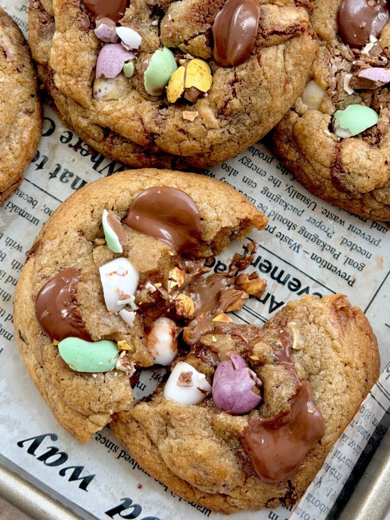 These Bakery Style Mini Eggs Cookies are thick, bakery-style cookies with crisp edges, soft centres, and pockets of melted chocolate in every bite. Ideal for festive baking or everyday treats, these cookies are a must-try for anyone who loves soft and chewy chocolate chip cookies.