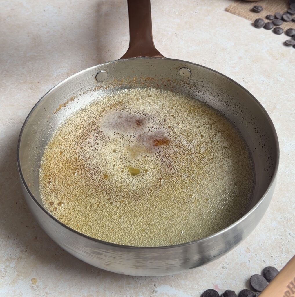 - Use a Deep Stainless Steel Skillet – Choose a deep 8-inch stainless steel skillet, such as the Berghoff Home pan I have used and included in my kitchen favourites. Stainless steel allows you to clearly observe the butter as it browns, helping you achieve the perfect golden colour and nutty aroma. It also distributes heat evenly, ensuring the brookie bakes consistently without hot spots.