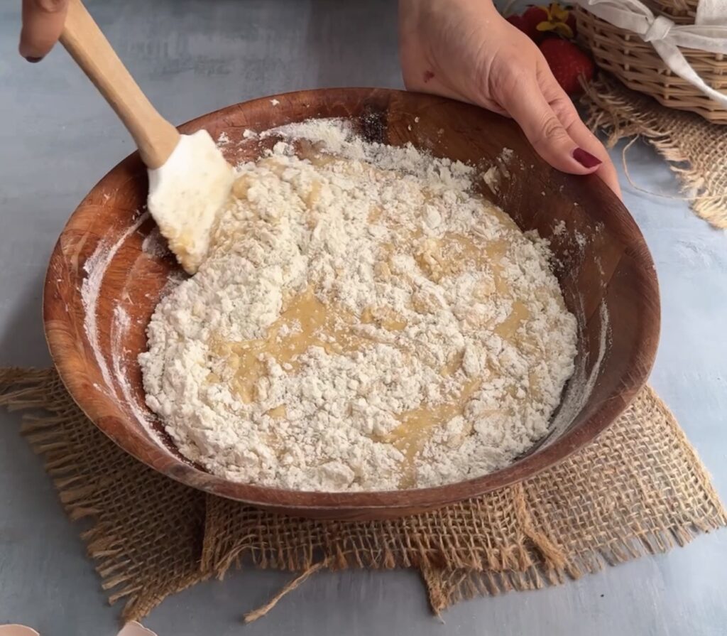 Add half of the dry mixture and gently fold it in. Then add half of the buttermilk and mix lightly. Repeat with the remaining dry ingredients and buttermilk, mixing just until combined. Avoid overmixing to maintain a tender crumb.