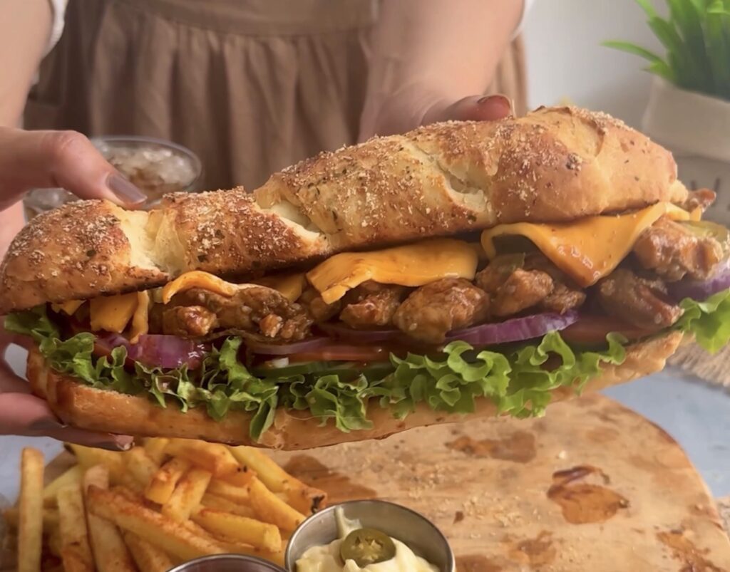 - Layer for Texture – Include fresh vegetables like lettuce, cucumber, and onions for crunch, contrasting the tender chicken and soft bun.