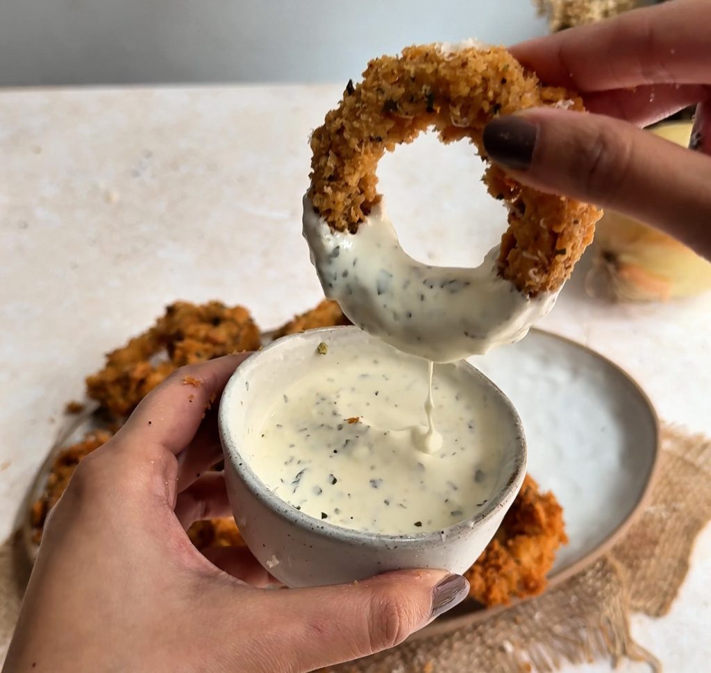 - Place fried onion rings on a wire rack to drain. Serve immediately with a cold ranch dip or your favourite sauce.