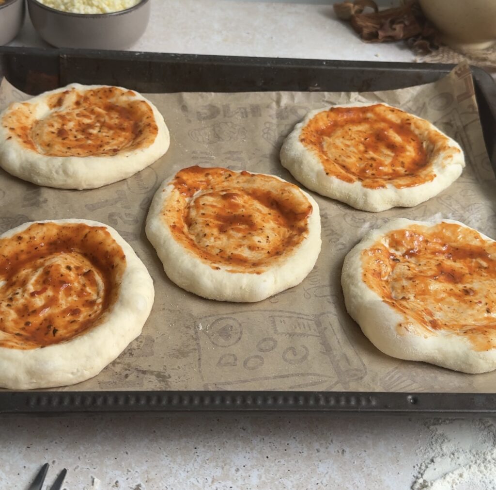 Bake in a preheated oven at maximum temperature (230°C) until golden and crispy. This will take approximately 6–8 minutes, depending on your oven. Do not overbake, as this can dry out the mini pizzas.