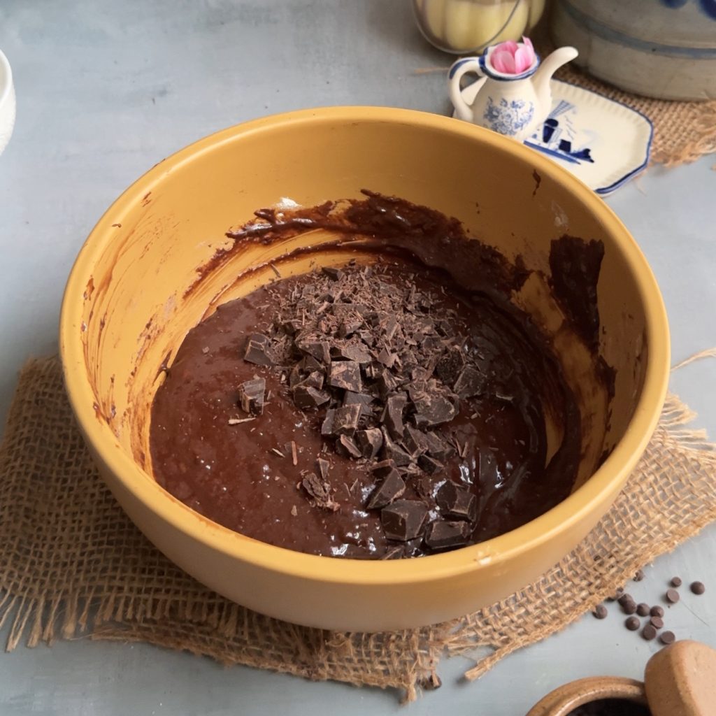 - Add the chocolate chunks and fold them in gently.
