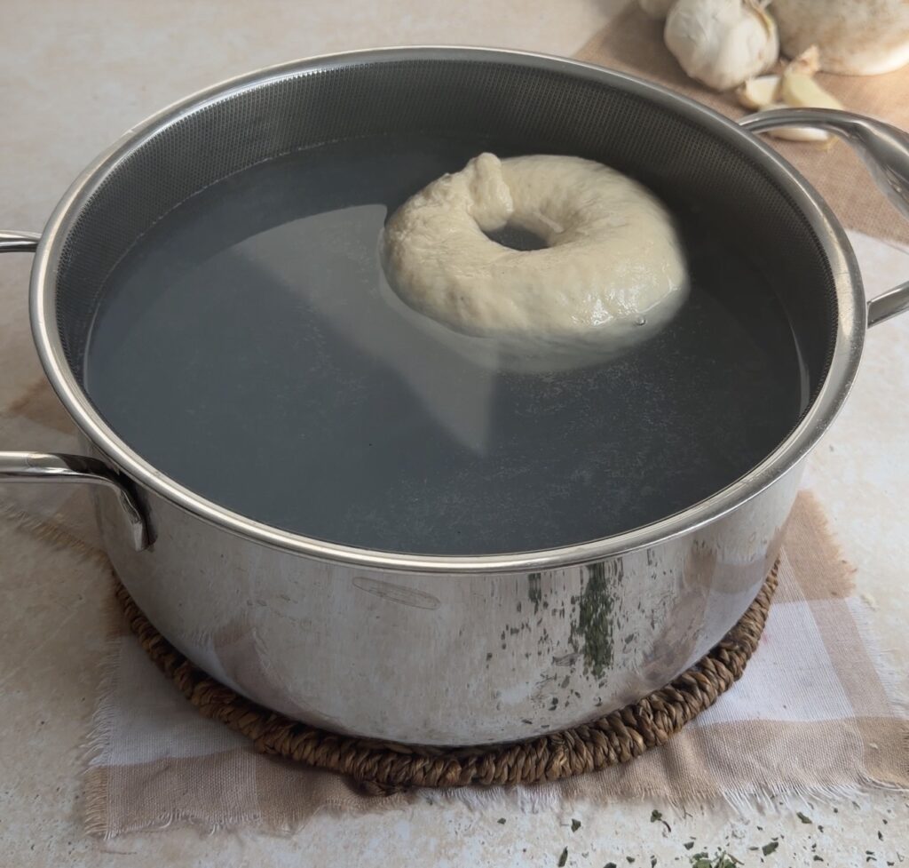 - Boil briefly – Boiling each bagel for just 5 seconds per side creates a shiny, chewy crust without over-softening.