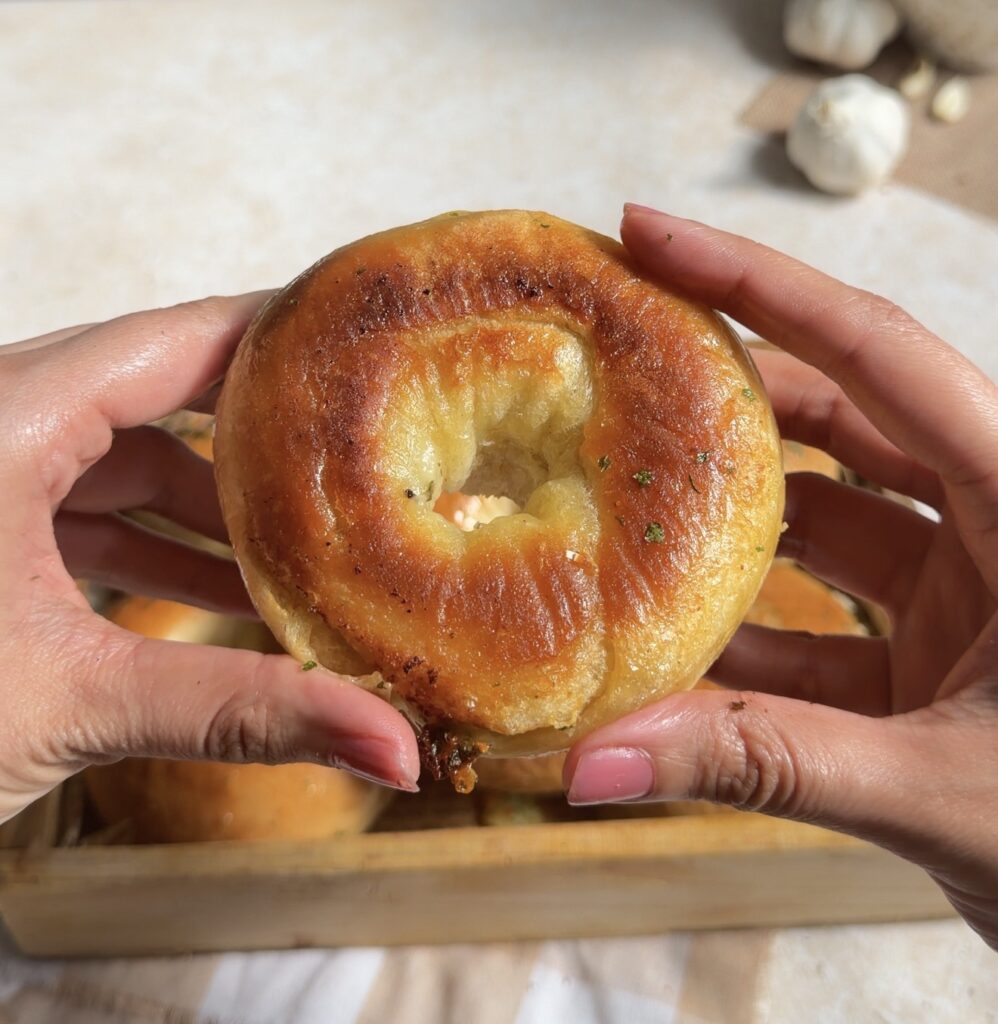 Experience the ultimate homemade bagels with rich garlic butter and melted mozzarella. Cheesy Garlic Bagels are soft on the inside, golden on the outside, and packed with flavour, perfect for brunch, snacking, or impressing family and friends.