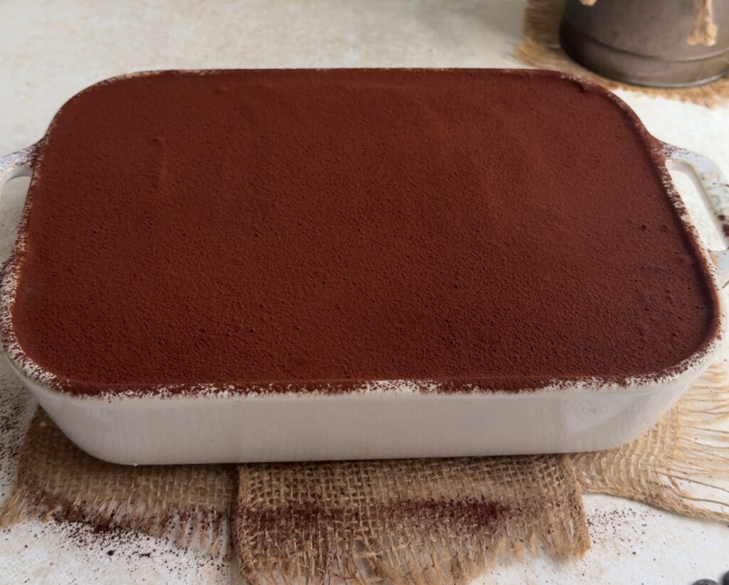 Before serving, dust generously with cocoa powder for a classic finish. Slice, serve chilled, and enjoy this creamy, eggless Hot Chocolate Tiramisu.