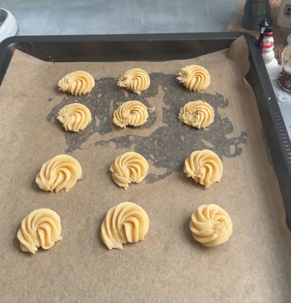 - Test with one cookie first – If it spreads too much, add a little more flour. If it’s too thick to pipe, mix in a teaspoon of cream.