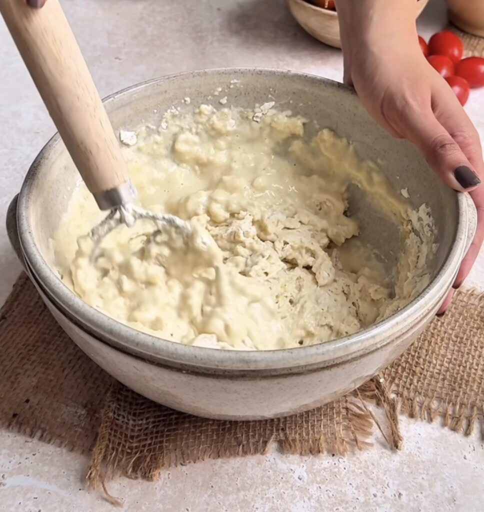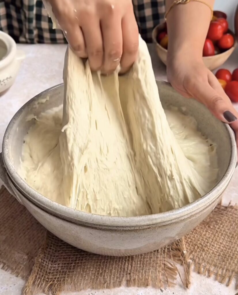 Once the final fold is complete, cover the bowl and let the dough rise at room temperature for about 1.5 to 2 hours. During this time, the dough should double in size and look light and bubbly. This bulk fermentation step is essential for developing flavour and achieving a soft, fluffy crumb.