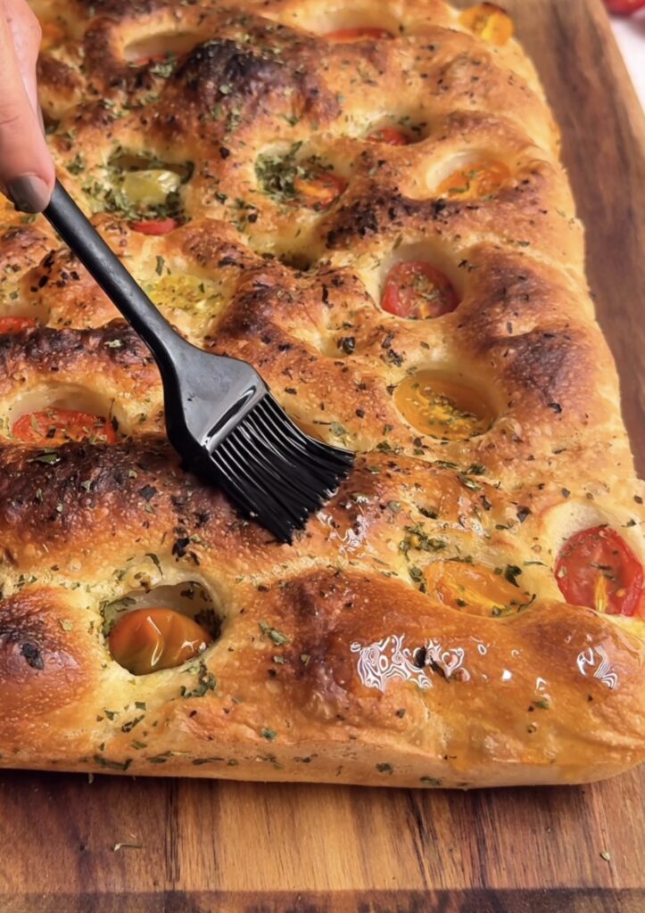 • Oil Generously – Focaccia loves olive oil. Be generous when greasing the pan and drizzling on top. This not only prevents sticking but also creates that signature crispy bottom and rich Mediterranean flavour.