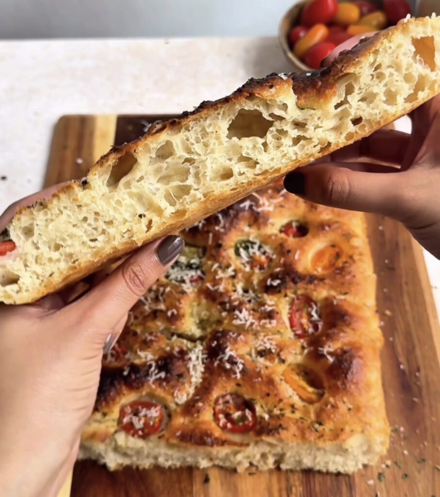 • Use a Kitchen Scale – For the best same day focaccia results, measure your flour and water using a kitchen scale. Accurate measurements ensure the perfect hydration level, which gives you that light, airy crumb and those beautiful focaccia bubbles.