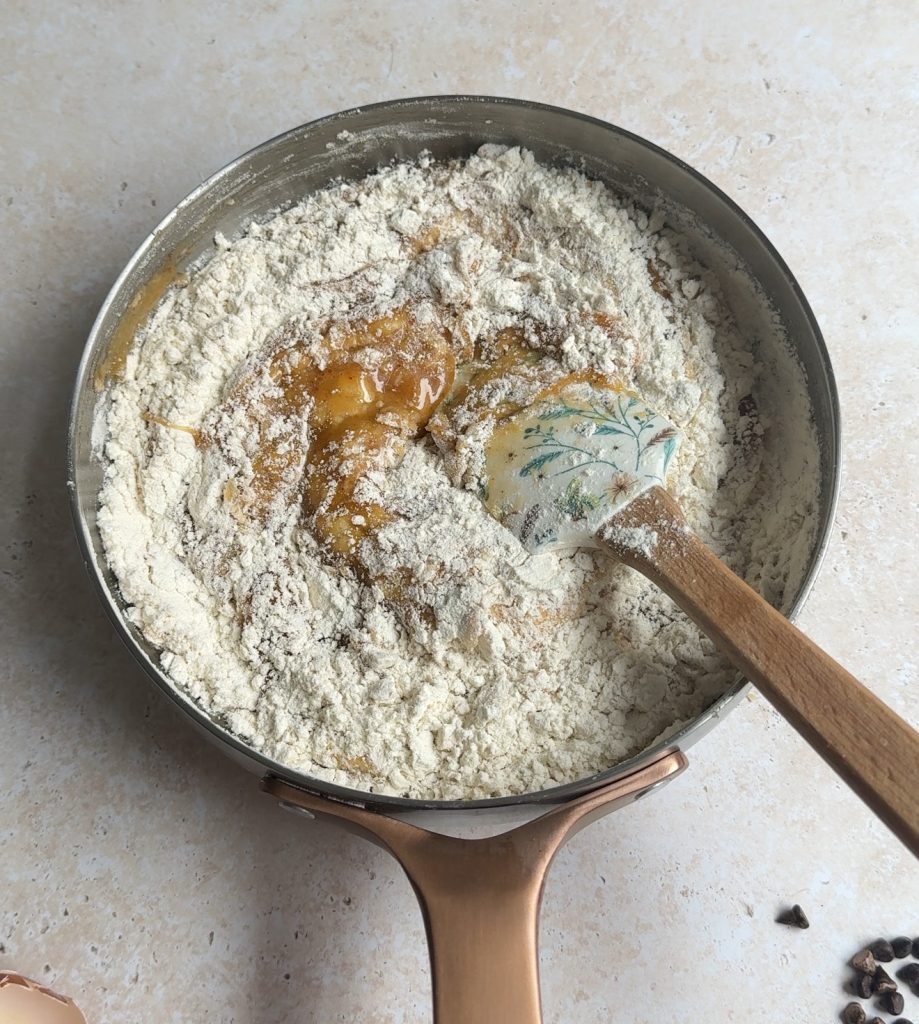 • Brown the Butter – Cook the butter over medium heat while swirling it occasionally. Continue cooking until it turns golden brown and releases a rich, nutty aroma. This process enhances the flavour with a deep caramel-like taste, which adds complexity to your cookies. Be sure to watch closely to avoid burning it.