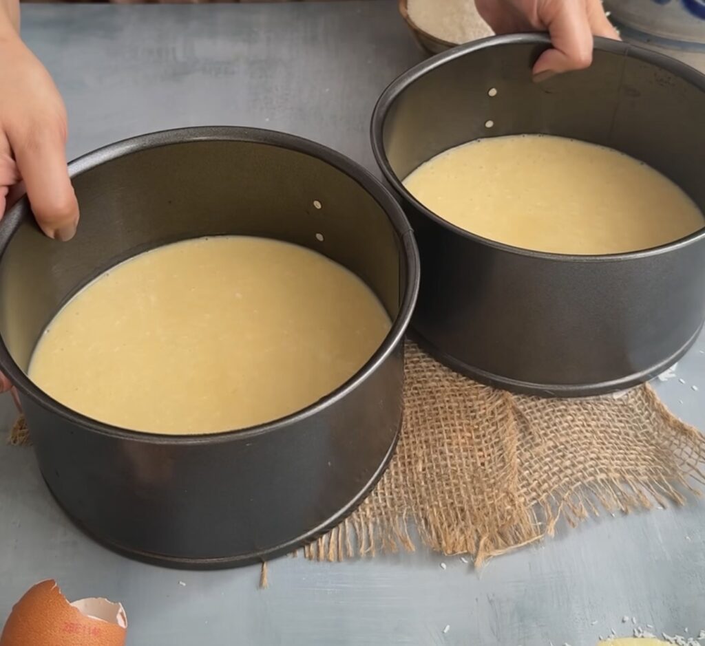 - Pour the batter evenly into the prepared pans. Bake at 170°C for 30–35 minutes, or until a toothpick inserted in the center comes out clean. Allow the cakes to cool completely before assembling.