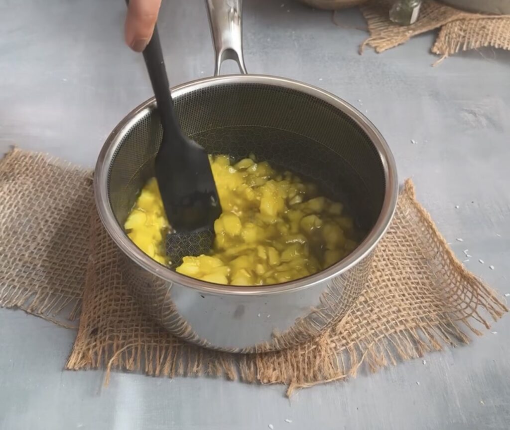 - Meanwhile, cook crushed pineapple, pineapple juice, and sugar in a saucepan for 4–5 minutes. Then add the cornstarch slurry and continue cooking until thickened. Let it cool fully before use.
