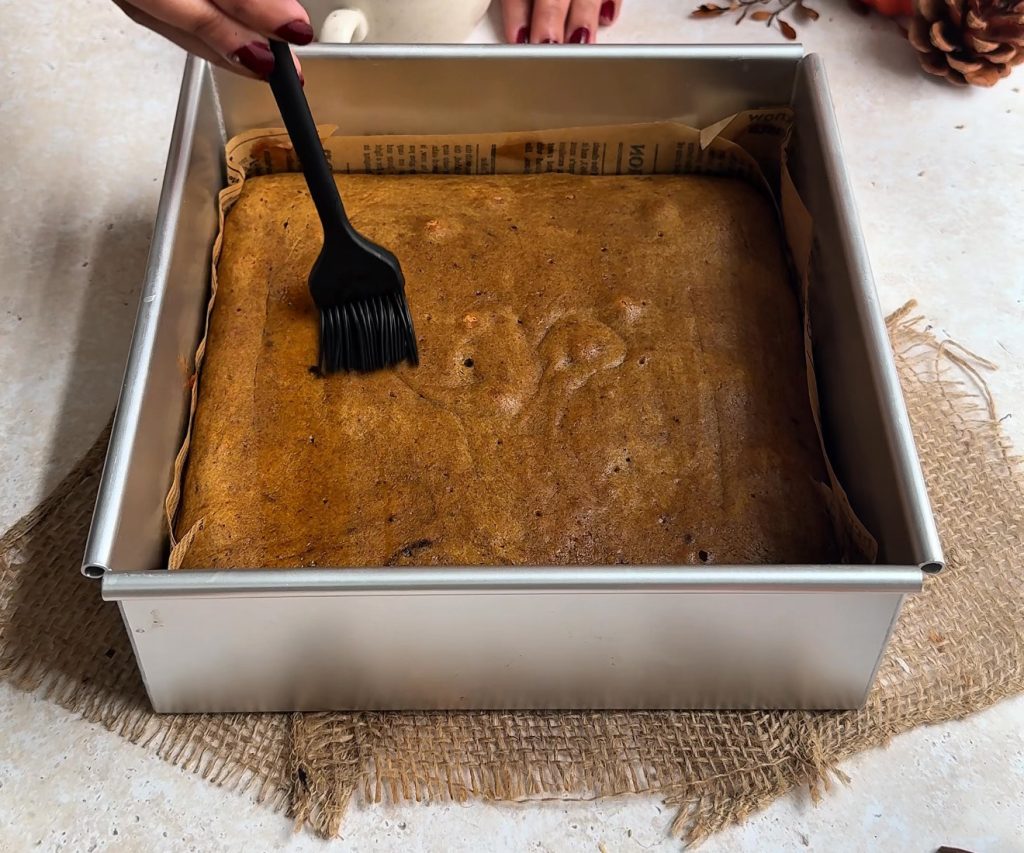 - Use Thick Pumpkin Purée – Make sure your pumpkin purée isn’t watery. A thicker purée keeps the cake moist without making it dense, and it helps the crumb stay soft and fluffy..