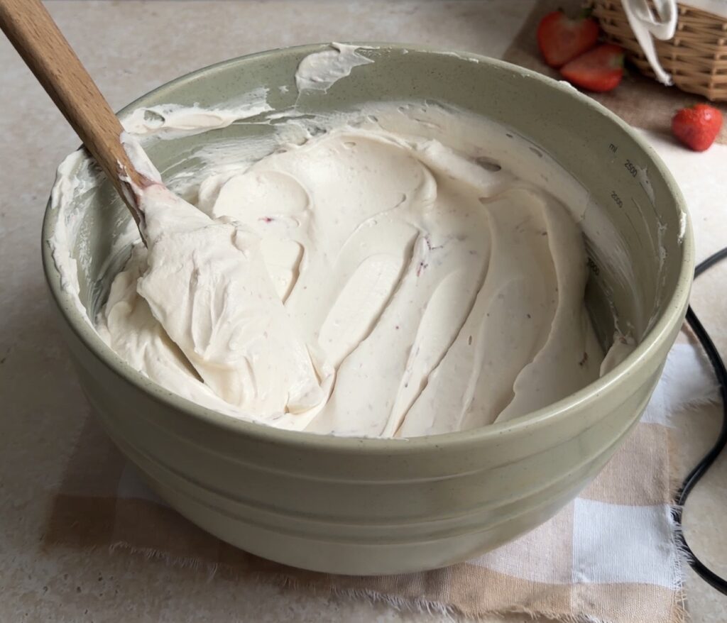Use heavy whipping cream (at least 35% fat) so the strawberry mascarpone cream becomes stable and fluffy.
