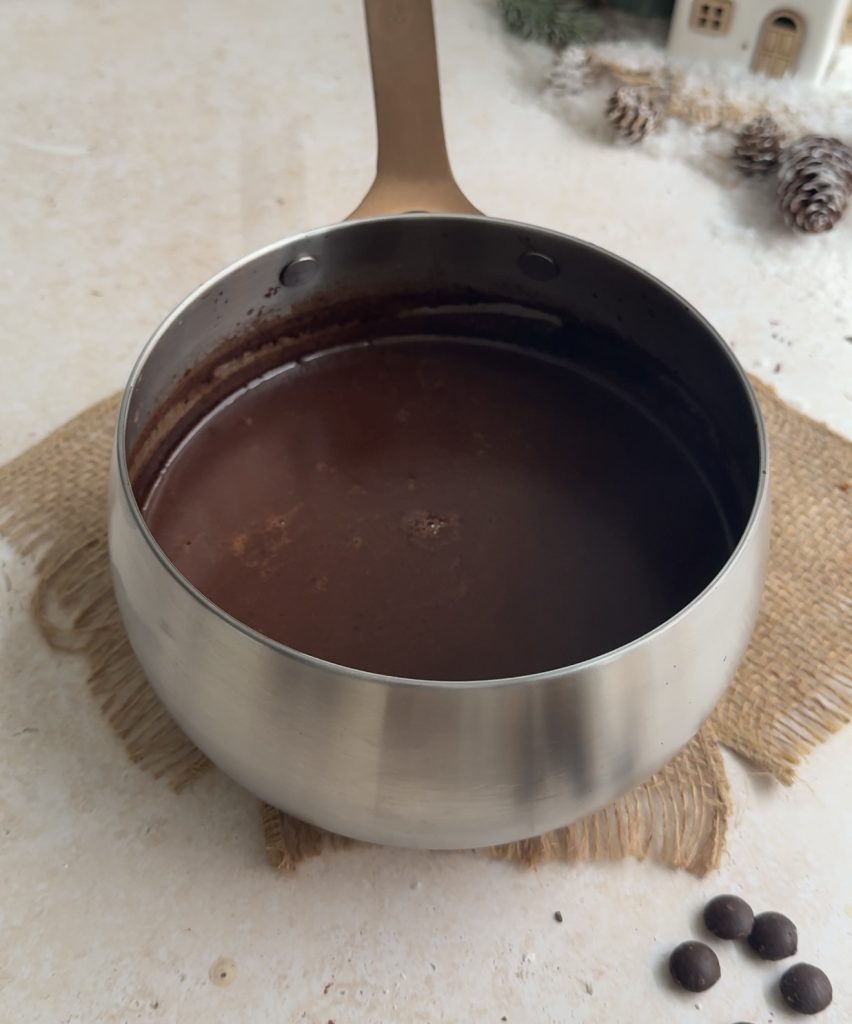 - When the texture looks velvety and smooth, remove the saucepan from the heat and pour the hot chocolate into your mugs.